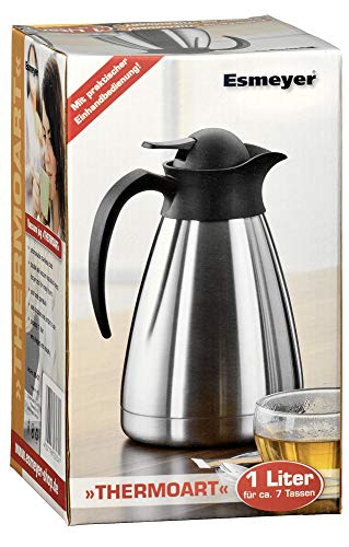 Esmeyer Thermoart - Caraffa Termica THERMOART, Contenuto: 1 litro, Acciaio Inox infrangibile, per Uso con Una Sola Mano, Altezza: 230 mm