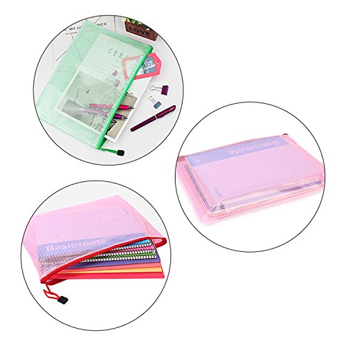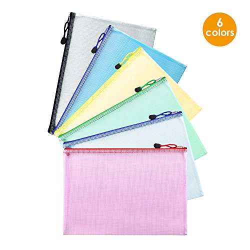 Esnow 12 pezzi formato A4 formato borsa porta documenti borsa in plastica impermeabile Zip Zip con chiusura lampo per ufficio cosmetici forniture, 6 colori
