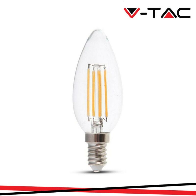 LED Lampadina 6W Filamento E14 Clear Cover Candela 6400K SKU: 217425: VT: VT-2127 Caratteristiche del prodotto 80% di consumo energetico in meno rispetto alle lampadine standard Lunga durata Nessuna emissione di radiazioni UV e radiazioni non ionizzanti Accensione immediata, nessun tempo di riscaldamento Bassa potenza termica Direttamente sostituibile alle lampade ad incandescenza tradizionali Installazione Aree Commerciali e Residenziali Hotel, Bar Stand espositivi Lampadari Allaperto, esclusivamente allinterno di apparecchi idonei. Specifiche tecniche Informazione generale Attacco E14 Tipo Lampadina Candela Tipo LED Filamento Vitamedia 20,000 ore Dati elettrici Potenza 6W Tensione AC:220-240V Frequenza 50Hz Dati tecnici luce Fascio Luminoso° 300° Colore della luce Bianco Temperatura di colore 6500K Flusso luminoso (lm) 600 lm Indice di resa cromatica Ra >80 Dettagli corpo Materiale Vetro Funzionalità IP Protezione IP20 Tempo innesco 100% 0.001 secondo Stabilità del colore Numero