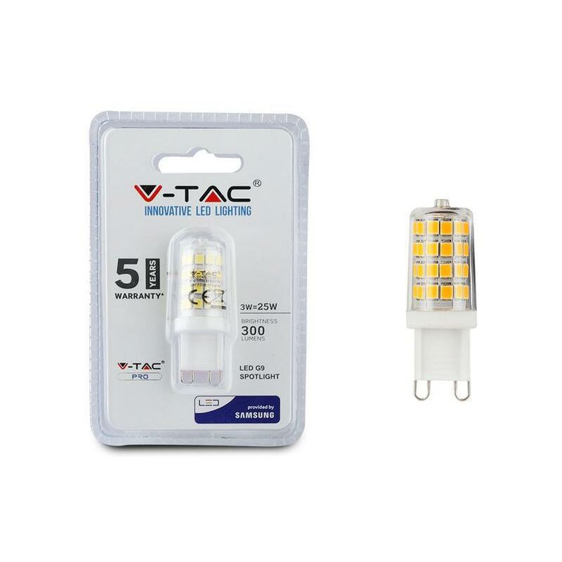 LED Lampadina SAMSUNG Chip G9 3W Plastica 4000K SKU: 21247: VT: VT-204-N Caratteristiche del prodotto 80% di consumo energetico in meno rispetto alle lampadine standard Lunga durata Nessuna emissione di radiazioni UV e radiazioni non ionizzanti Accensione immediata, nessun tempo di riscaldamento Bassa potenza termica Direttamente sostituibile alle lampade ad incandescenza tradizionali Installazione Aree Commerciali e Residenziali Hotel, Bar Stand espositivi Lampadari Allaperto, esclusivamente allinterno di apparecchi idonei. Specifiche tecniche Informazione generale Attacco G9 Tipo Lampadina T17 Tipo LED SAMSUNG Chip Vitamedia 20 000 ore Dati elettrici Potenza 3W Potenza EQV. a incandescenza 30W Tensione AC:220-240V Frequenza 50Hz Fattore di potenza >0.4 Dati tecnici luce Fascio Luminoso 300° Colore della luce Bianco naturale Temperatura di colore 4000K Flusso luminoso (lm) 330 lm Indice di resa cromatica Ra >80 Dettagli corpo Materiale Plastica Funzionalità IP Protezione IP20 Tempo