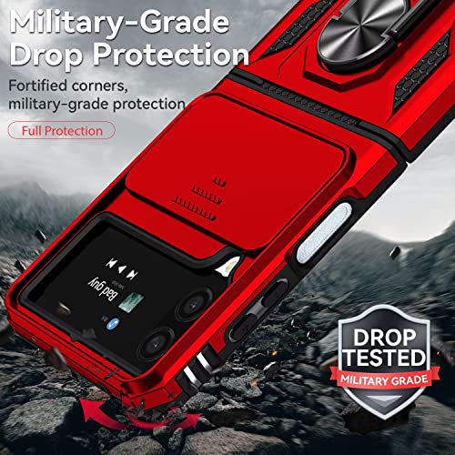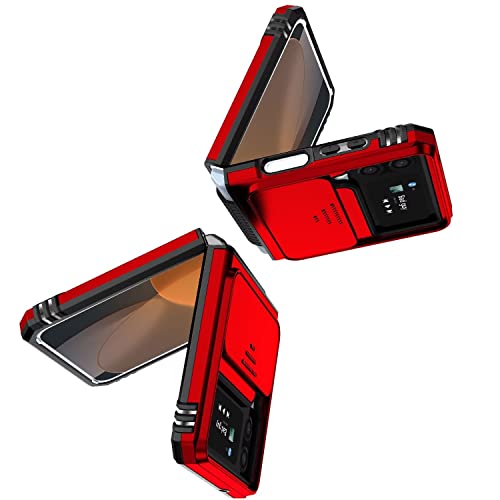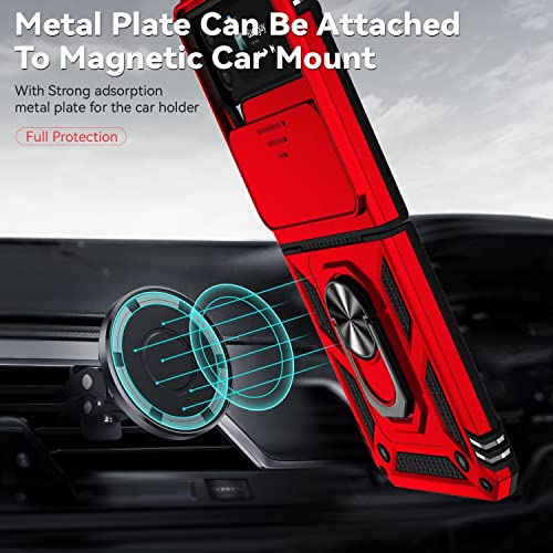 ESONG Cover per Samsung Galaxy Z Flip4,Custodia Protettiva di Grado Militare con Scorrevole Fotocamera Proteggi,PC&TPU Antiurto Case con 360° Magnetica Anello Supporto per Samsung Galaxy Z Flip4,Rosso