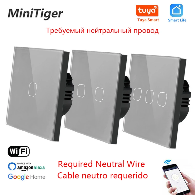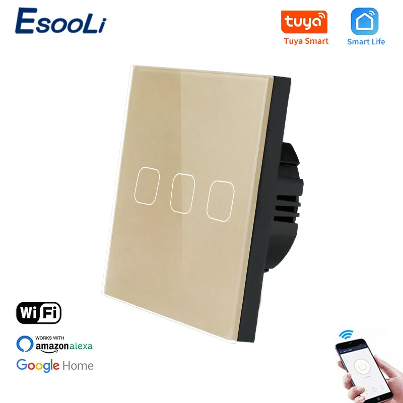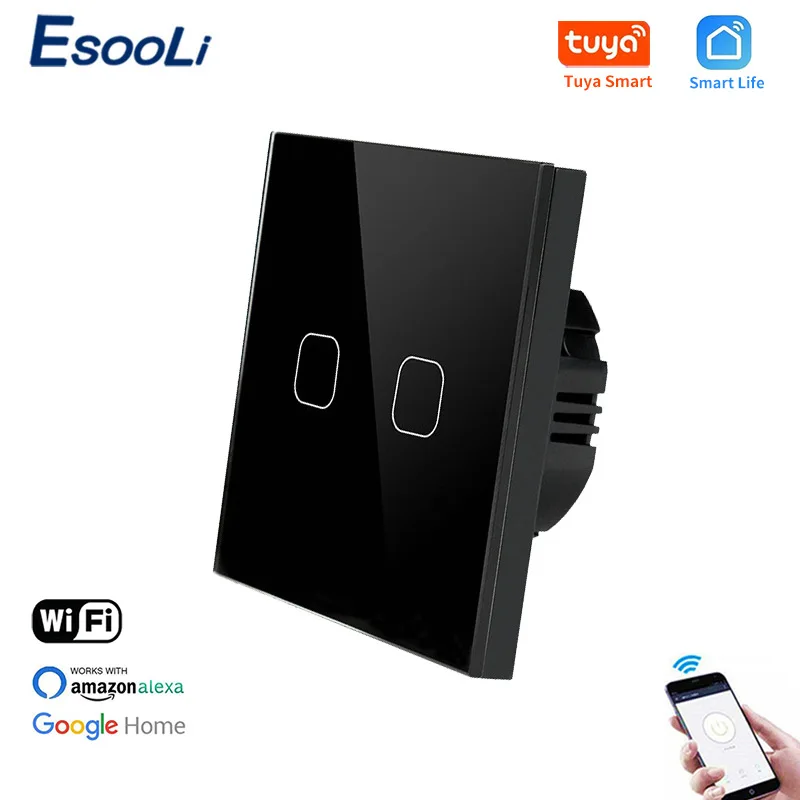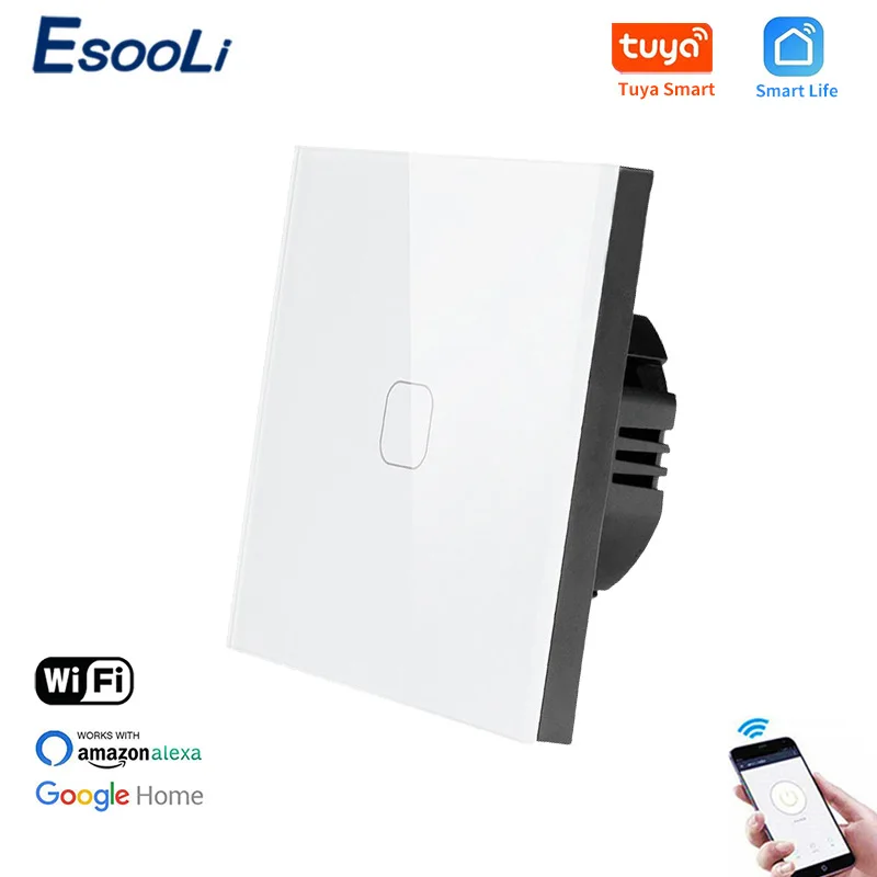 EsooLi EU Standard 1/2/3 Gang Tuya/Smart Life WiFi Wall Light Touch Switch for Google Home Wireless Control Touch Light Switch