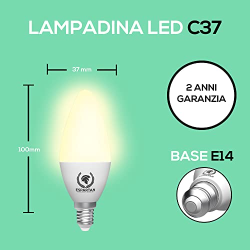 ESPARTAN - Lampadine LED E14 Luce Calda Candela 6W, 3000K, 510 Lumen, Equivalenti a 40W Lampadine Alogene, Lampadina LED E14, Lampadina E14 LED, Lampade LED E14, Lampadina LED E14 Luce Calda - Pack 3