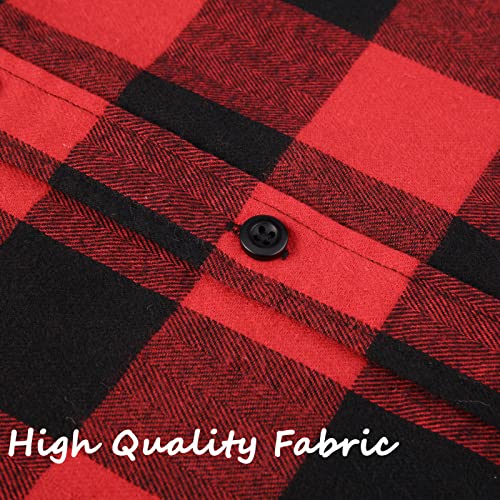 ESPFHN Camicie a quadri in flanella da uomo Casual Button Down Camicie a maniche lunghe Camicia a quadri Regular Fit, rosso/nero, L