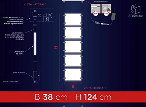 Espositore a cavetti luminoso monofacciale da vetrina, EVO LED KIT 1x5, con 5 cartelle in plexiglass formato A4 orizzontale, porta annunci per agenzie immobiliari, studi fotografici, ecc.