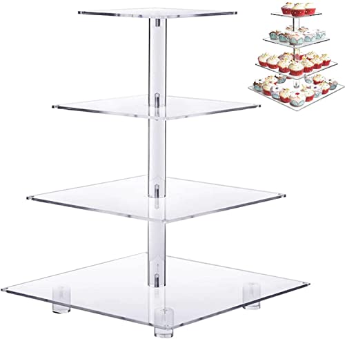 Espositore per cupcake quadrato in acrilico trasparente a 4 piani, con albero per dolci, dolci, dolci, dolci, caramelle, cannucce, cannuccia, per compleanni, feste, matrimoni ecc. (quadrato)