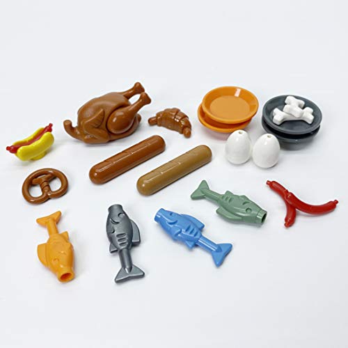 Confezione giocattolo di prodotti alimentari personalizzati per figurine e soldatini: compatibili con mattoncini Lego.