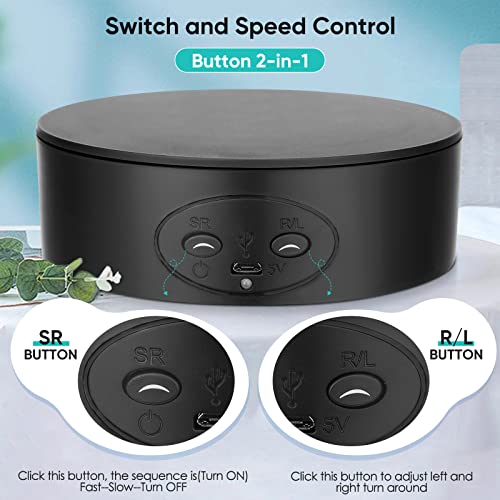 ➤【Display Panoramico a 360 Gradi】: il nostro giradischi adotta un design del giradischi a 360 gradi, l'intervallo di velocità è di 8-30 secondi/rivoluzione, può essere ruotato in senso orario/antiorario e puoi regolare varie direzioni e angoli di rotazione in base alle tue esigenze