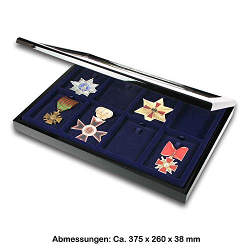 SAFE 5926 Teca Espositore in vero legno laccato per 8 medaglie | interno velluto blu reale | cuscinetti estraibili | chiusura magnetica | Dimensioni: 375 x 260 x 38 mm