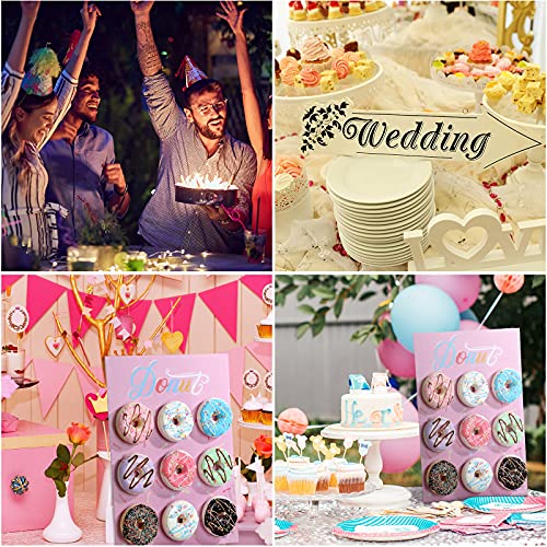 Espositore da Parete Bordo Riutilizzabile del Supporto della Ciambella con Bastoncino di Legno Rustico per Decorazioni Tavolo da Dolce al Matrimonio Compleanno Baby Shower (Rosa)
