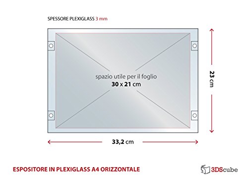 Espositore in plexiglass per avvisi, da parete, targa a tasca apribile in plexiglass, porta annunci e depliant formato A4orizzontale 30x21 cm, completa di distanziali in alluminio (1 pezzo)