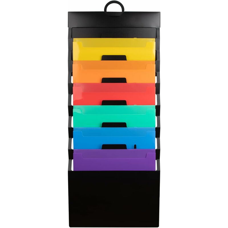 Ben organizzato - Realizzato in plastica, è resistente agli strappi, durevole e impermeabile. Con l'organizer per file sospesi, organizza l'organizzazione e gli spazi di lavoro classificando tutti i tuoi file, documenti e file di riferimento in un unico posto. 【Facile da appendere e flessibile】 Lo schema tascabile ha una maniglia a portata di mano sulla parte superiore per appenderlo facilmente. Chiusura con cordino elastico per un trasporto facile e sicuro. Il portadepliant è dotato di 6 scomparti, che possono essere ripiegati come una borsa portadocumenti portatile in viaggio di lavoro.Accesso ai documenti. Ogni tasca contiene 50 fogli, estremamente robusti, possono contenere cartelle, documenti, moduli, libri, progetti, scartoffie, articoli di cancelleria, quaderni, leggere bollette, posta in entrata e in uscita, ecc. 【Versatile】 Funziona perfettamente come organizzatore di file, organizzatore di banconote, portadocumenti, organizer per documenti, sistema di archiviazione