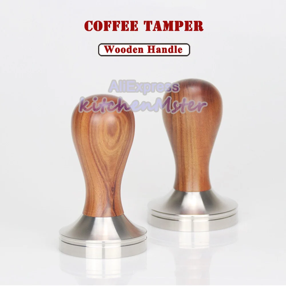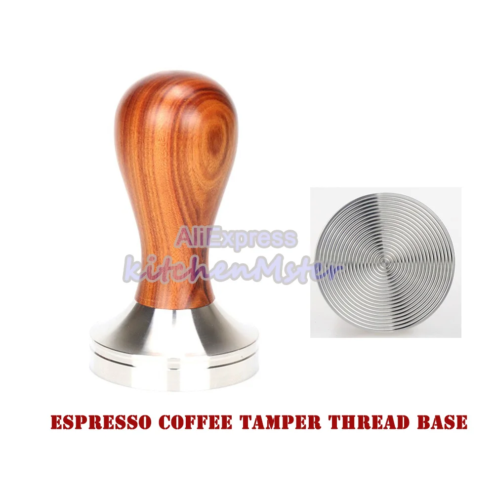 Espresso Coffee Tamper Flat/Thread Base Coffee Powder Hammer with 304 Stainless Steel Wooden Handle Professional Coffee tools