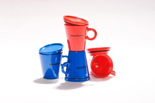 Espresso Away, Set 4 tazzine caffe particolari, con coperchio, di design