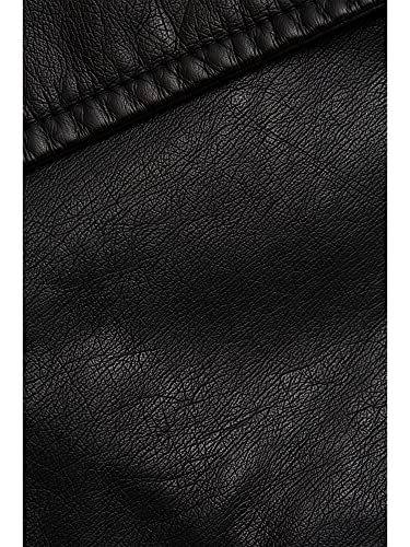 Un elemento essenziale che non può mancare in nessun guardaroba: giacca corta da motociclista in finta pelle con dettagli con zip, tasche e cuciture decorative.