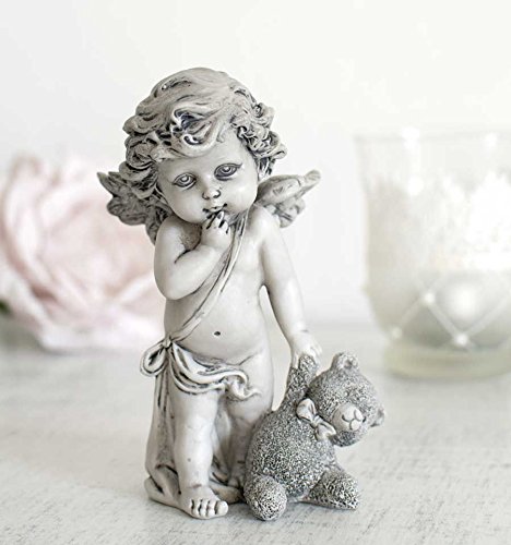 Angelo Cherubino con suo Nounours che passeggiata con lui in riva. Altezza 15 cm Resina