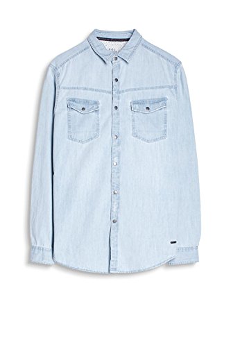Camicia di jeans edc con leggeri effetti usati e pratici bottoni automatici