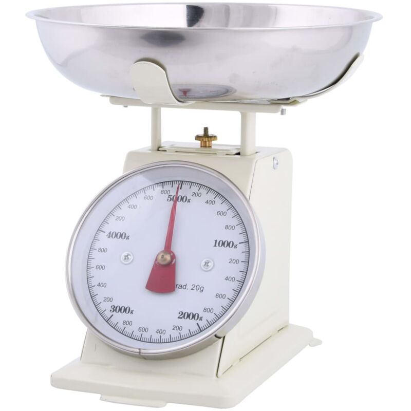 Con questa bilancia da cucina dall'aspetto vintage della Esschert Design possederete un accessorio indispensabile in cucina e dal design accattivante. L'ampio e nitido quadrante risulta molto facile da leggere. Inoltre, la bilancia ha una capacità di pesatura fino a 5 kg e le misure vengono visualizzate con un preciso incremento di 20 g. La ciotola estraibile, realizzata in acciaio inossidabile, è lavabile in lavastoviglie. Colore: Crema Materiale: Acciaio inossidabile, ferro, PMMA Dimensioni: 21,4 x 21,2 x 21 cm (L x P x A) Capacità di pesatura: 5 kg (con incremento di 20 g) Bilancia meccanica, non sono necessarie batterie Ampia Ciotola RVS, rimovibile, lavabile in lavastoviglie, Ø 21 cm Azzeramento con ripristino automatico Facile da leggere SKU: 428841