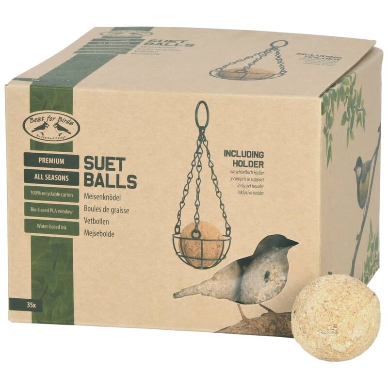 Queste palline di grasso per uccelli 4 stagioni della Esschert Design offrono una miscela nutriente di materie prime ad alta energia, perfette per nutrire gli uccelli selvatici tutto l'anno. Gli uccelli sono molto impegnati durante la primavera. Prima devono trovare un partner, poi trovare uno spazio di vita, deporre le uova e allevare i loro piccoli. Durante l'estate fanno la muta e ottengono un nuovo cappotto. In autunno si preparano per l'inverno, e durante l'inverno hanno bisogno di più grassi per mantenersi alla giusta temperatura. Gli uccelli possono perdere il 10% del loro peso corporeo durante una notte fredda. In queste palle grasse ci sono cereali come il grano e l'avena nera e semi come i semi di girasole. Vengono anche consegnati senza la rete di plastica, il che le rende migliori per gli uccelli e l'ambiente. Il supporto è composto da un cestino in acciaio su catene da appendere facilmente nel vostro giardino o sul balcone. Successivamente, potete riempire il supporto con