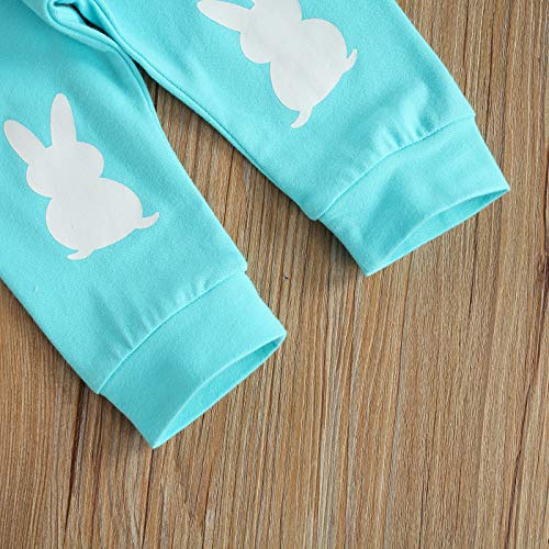 ESSECMBS 3Pz Completo Neonato Pasqua Pagliaccetto Coniglio Neonato Bimbo con Lettere'My First Easter' Tuta Elegante Bambino+Pantaloni Bambino+Capello (Bianco+Blu, 12-18 Mesi)
