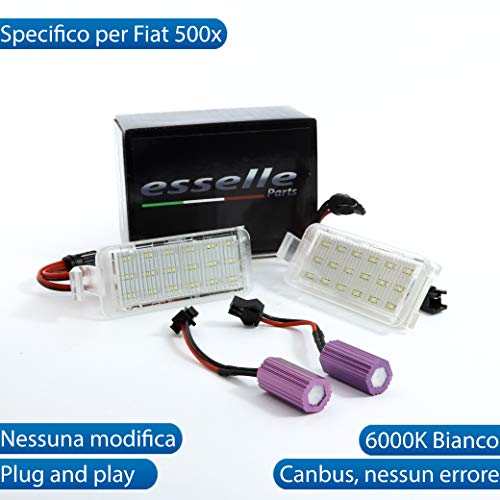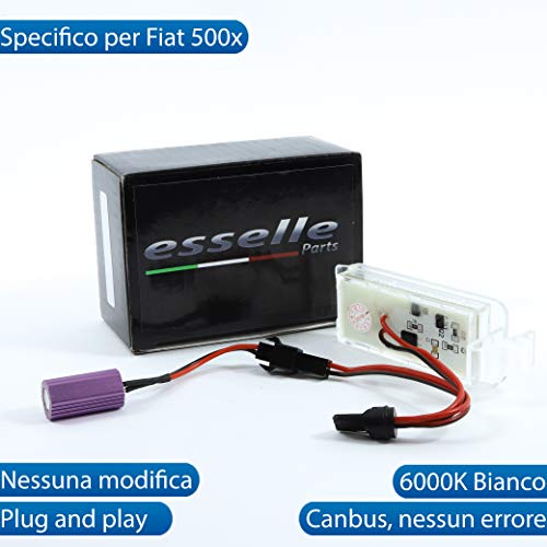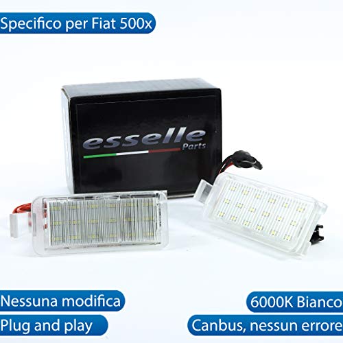 Esselle Parts Coppia PLACCHETTE LED Targa LUCI Targa Complete Fiat 500X 18 LED su Ogni PLACCHETTA CANBUS 6000K Bianco Plug And Play NESSUN Errore O AVARIA