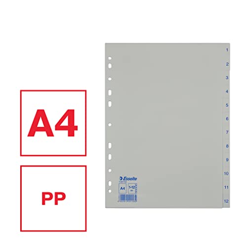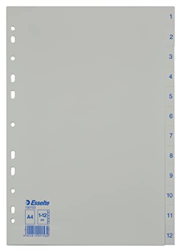 Esselte 100153 - Divisori per Formato A4, 12 divisori con Numeri da 1 a 12, in plastica Resistente, Colore: Blu/Bianco