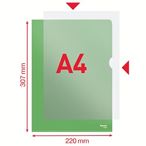 ESSELTE Deluxe Confezione da 100 Buste Trasparenti"L" in PPL Antiriflesso, Formato A4, Verde