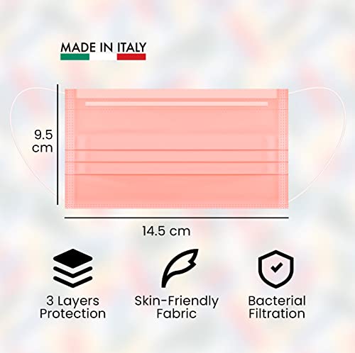 ESSENN 100 Mascherine Bambini Rosa MADE IN ITALY Tipo IIR Certificate CE Interno Bianco 10 Pacchetti da 10 Pezzi (Rosa 100)
