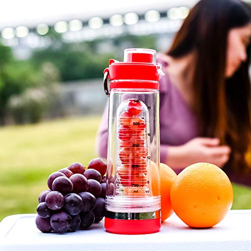 Eono Essentials Fruit Infuser Water Bottle, Fruit Water Bottle, Infuser Water Bottle, Water Bottle Flip-top Bite Valve BPA-Free Wide Mouth 100% Leak Proof, Sports Drinking water Bottle 20oz 600ml (Red)