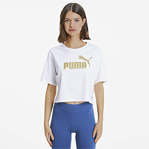 Puma Essentials+ Metallic Ped Tee, Maglietta Donna, Bianco (White/Gold), L