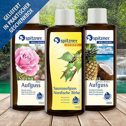 Set di essenza per sauna di Spitzner in confezione regalo, serata tra ragazze: rosa, betulla nordica e cocco all'ananas (3x190ml)