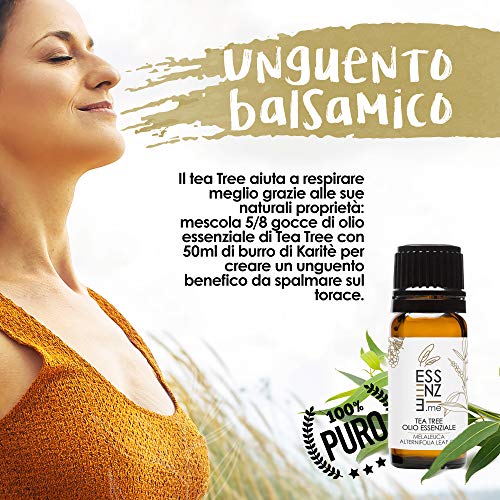 ESSENZE OLIO ESSENZIALE DI TEA TREE Puro al 100% Naturale, Per Diffusore Oli Essenziali Aromaterapia, Profumo Ambiente, Cura Del Corpo e Della Pelle. Controllato e Confezionato in ITALIA.