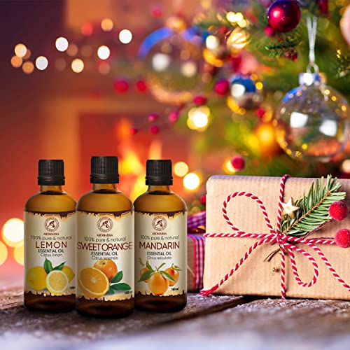 Olio Essenziale Set 3x100ml - Oli Aromaterapici - Limone - Arancia - Mandarino - Kit Set 3 Oli Essenziali per Diffusori - Bruciaolio - Umidificatore - Aromaterapia Olio Essenziale
