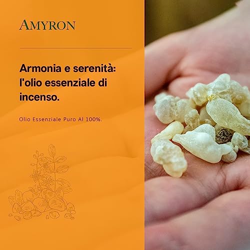 Olio Essenziale Incenso/Franchincenso AMYRON 15 ml - Naturale E Puro Al 100% Ideale Per Aromaterapia E Diffusore Oli Essenziali/Massaggi aromatici/Uso Alimentare.
