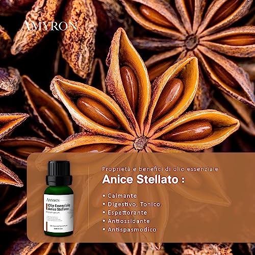 Olio Essenziale Anice Stellato Naturale E Puro Al 100% Ideale Per Aromaterapia E Diffusore Oli Essenziali/Massaggi aromatici/Uso Alimentare. (Olio Essenziale Anice Stellato)