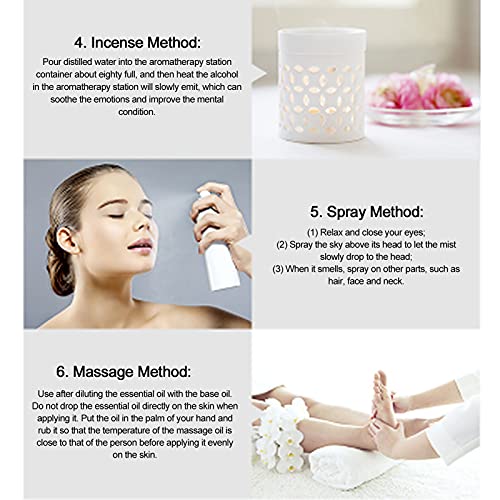 Diffuso o topico: usa l'olio essenziale puro per il diffusore per alleviare i pensieri stressanti per un sonno tranquillo durante la notte. Miscela l'olio essenziale di puro olio con oli vettore per bombe da bagno per idratare la pelle secca per una carnagione sana.