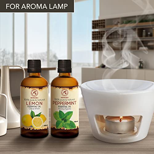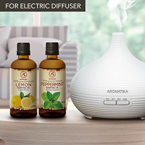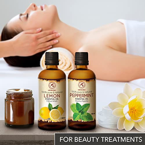 Oli Essenziali di Limone 100ml e Menta Piperita 100ml - Citrus Limon - Mentha Piperita - Profumo di Menta - Oli Aromaterapici per Diffusore - Buon Umore - Aroma Fresco