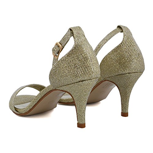 ESSEX GLAM Donna Diamante Cinturino alla caviglia Stiletto Peep Toe Glitter Sandalo