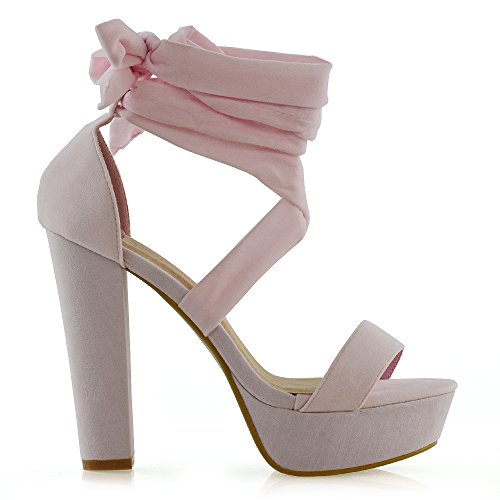 ESSEX GLAM Donna con Lacci, Alla Caviglia Cravatta Tacco Largo Alto a Zeppa da Donna Party Aperto Scarpe Numeri