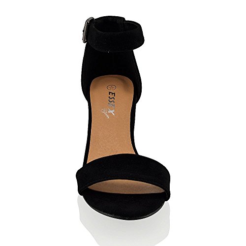 ESSEX GLAM Sandalo Donna Nero Ecopelle Scamosciata Tacco Basso EU 40