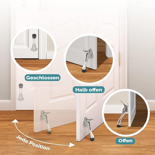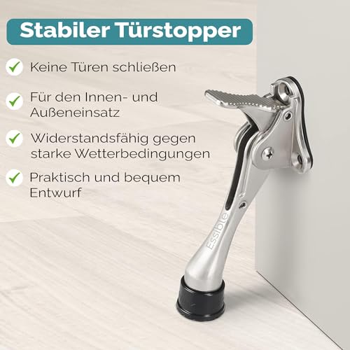 Essible Fermaporta Acciaio Inox - Fermaporta con Comando a Pedale Regolabile per Interni ed Esterni Fermaporta Inferiore Antiscivolo per Porte Leggere e Pesanti - 13 x 4 cm