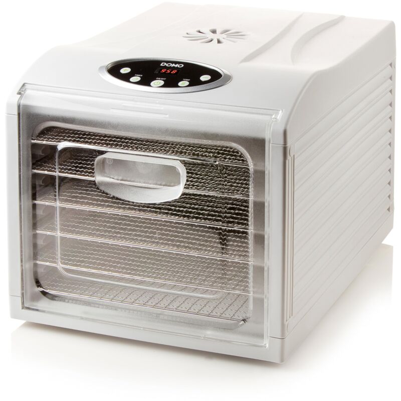 Disidratatore per frutta e verdura Domo DO353DV per conservare i tuoi alimenti mantenendone le qualità nutrizionali e tutti i suoi nutrienti e vitamine. Tipo di prodotto: Disidratatore per frutta e verdura. Potenza: 500 W. Timer. Funzione(i): 6 livelli di disidratazione. Protezione dal surriscaldamento. Accessori inclusi: Libro di ricette. Colore bianco. Dimensioni: 48 x 37,5 x 34,5 cm. Peso: 7kg.