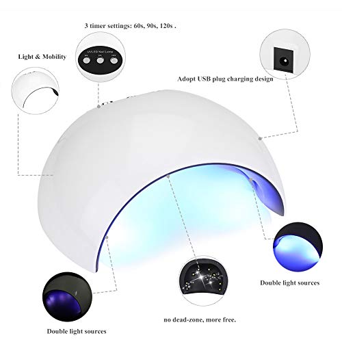 Più veloce e sicuro: le doppie sorgenti luminose (365 + 405 nm) LED possono asciugare tutti i tipi di gel per unghie (gel acrilico / gel duro / LED / gel UV) per risparmiare tempo di manicure e soddisfare la tua richiesta di manicure.