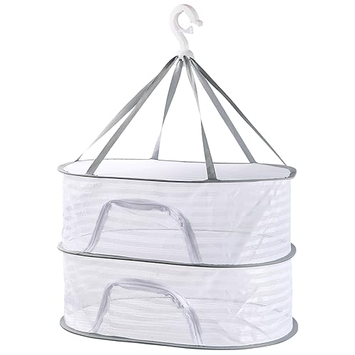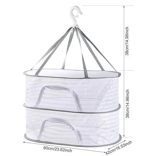 Rete di Essiccazione Sospesa, 2 Rete Pieghevole per Asciugatura a Strati, Essiccatore per erbe aromatiche,Rete Essiccazione con Chiusura Lampo,per Pesce Verdure Frutta Erbe Fiori Lampadine 40 x 60cm