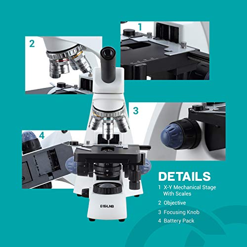 ESSLNB Microscopio 2000X Microscopio Ottico Professionale con Vassoio Meccanico Adattatore Telefonico 40X-2000X Microscopio Bambini NA1.25 Abbe Condensatore e Vetrini per Microscopio