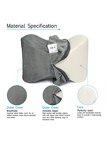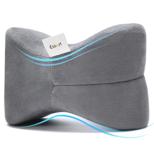 ESSORT Cuscino ergonomico per ginocchia per chi dorme sul fianco, in memory foam, con rivestimento in velluto lavabile, 23 x 13,5 x 22 cm (grigio)