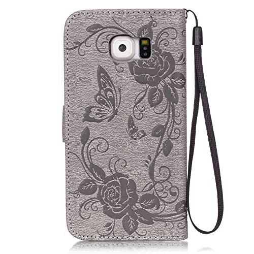 ESSTORE-EU Samsung Galaxy S6 custodia in pelle [comprende cavo di ricarica USB] per Samsung Galaxy S6, grigio