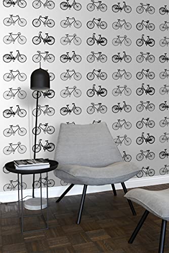 ESTAhome carta da parati biciclette bianco e nero - 138523-53 cm x 10,05 m