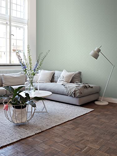 ESTAhome carta da parati spina di pesce verde menta e bianco - 139221-0,53 x 10,05 m