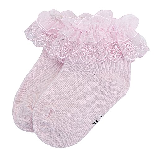 ESTAMICO 3 paia di calzini per neonato, in pizzo di cotone, per battesimo Rosa (3 paia). 6-12 mesi